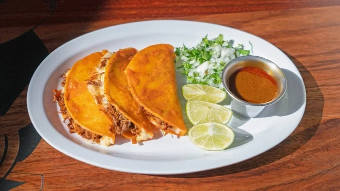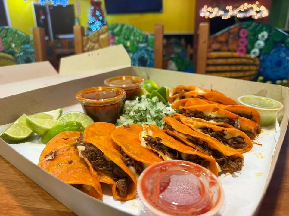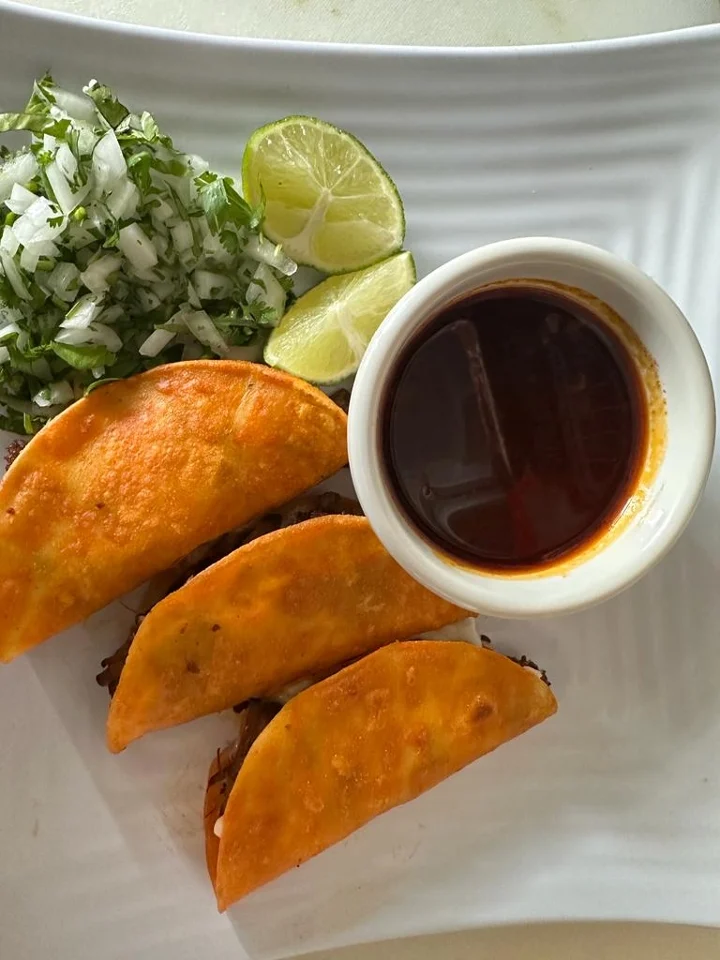 Our delicious handmade tacos are the best in town. Mini Corn tortilla with beef, cilantro, onion, mozzarella cheese and consome de birria