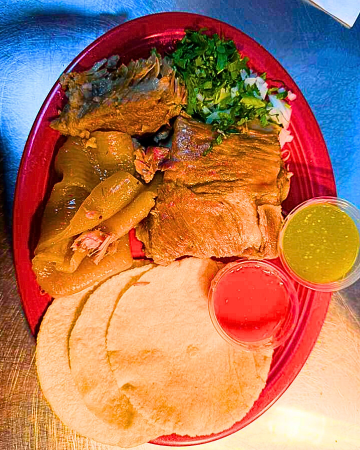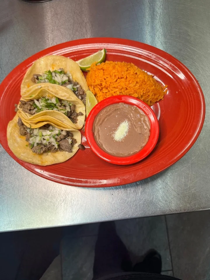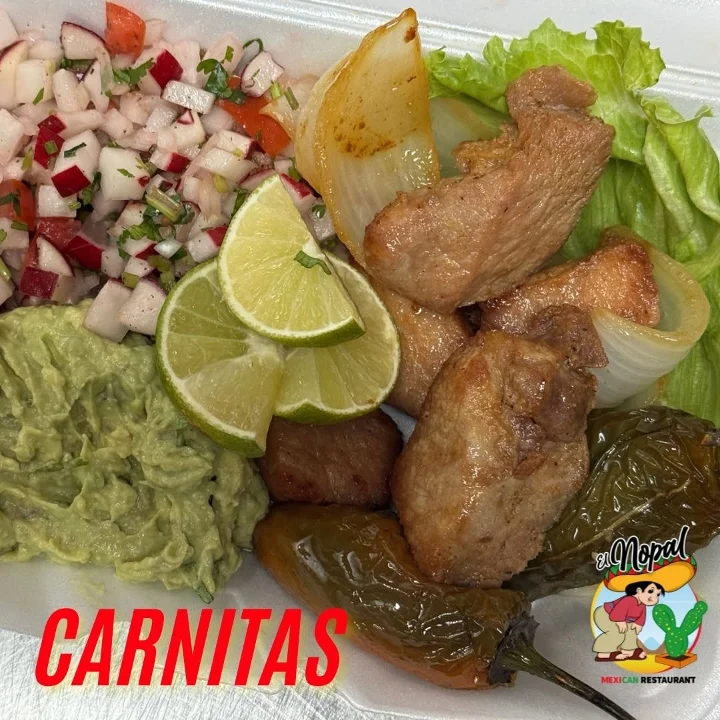 Special meat accompanied by chili, rice or beans, and nopales salad. with 3 tortillas.