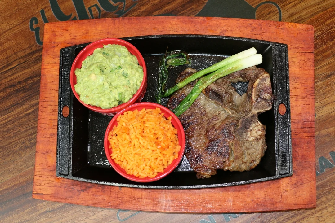 Special meat accompanied by guacamole with chips, green onions, rice. with 3 tortillas.