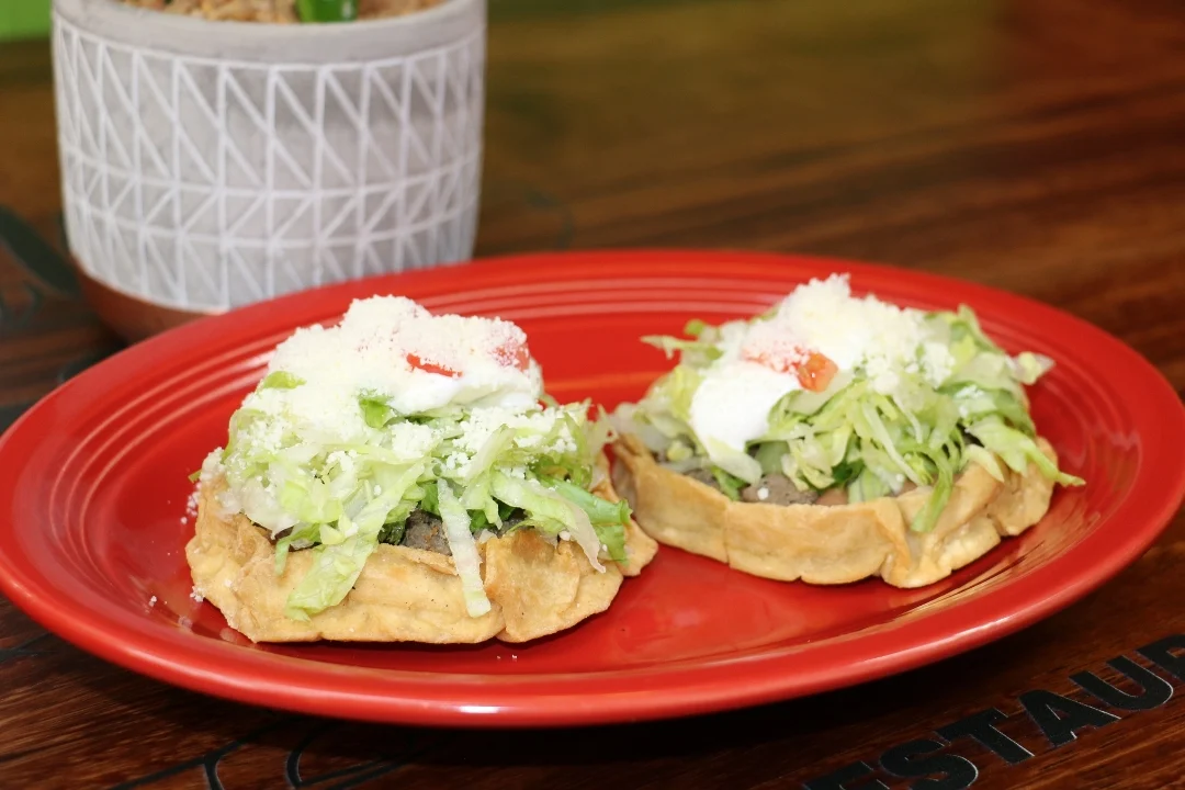 Fried tortilla topped with your choice of protein, beans, lettuce, tomatoes, Mexican cheese and sour cream.