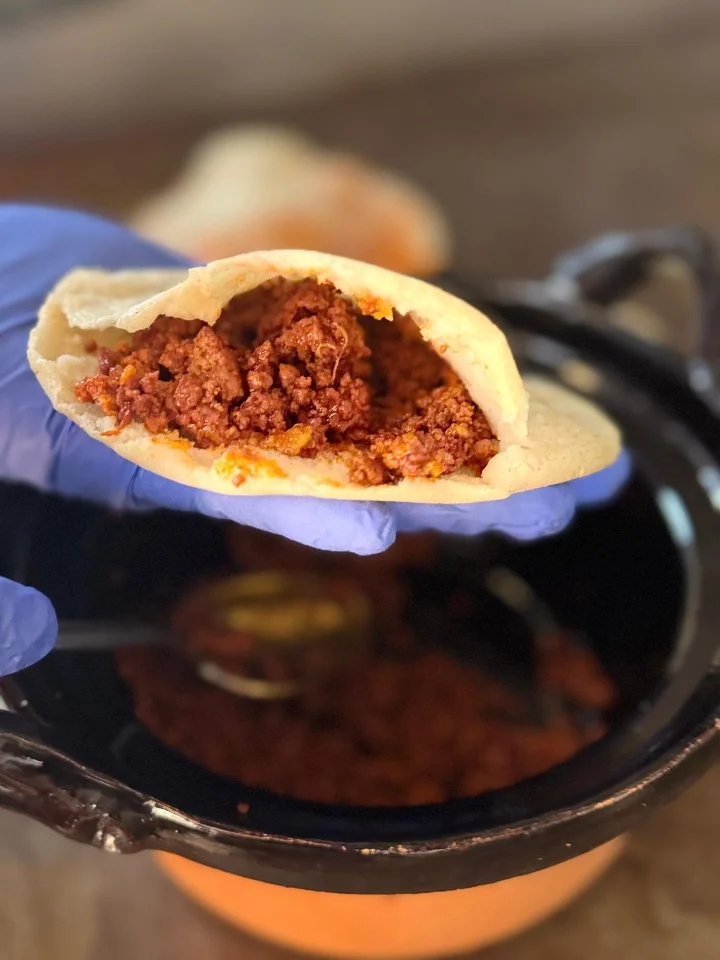 Choose your preferred meat, choose from red, green rebolltillo, and barbacoa.