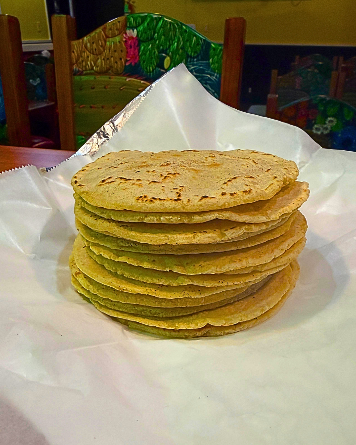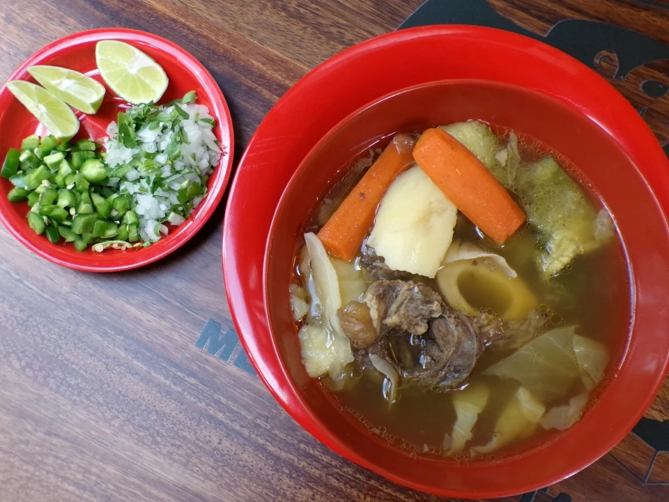 Mexican beef tripe soup with 3 tortillas.